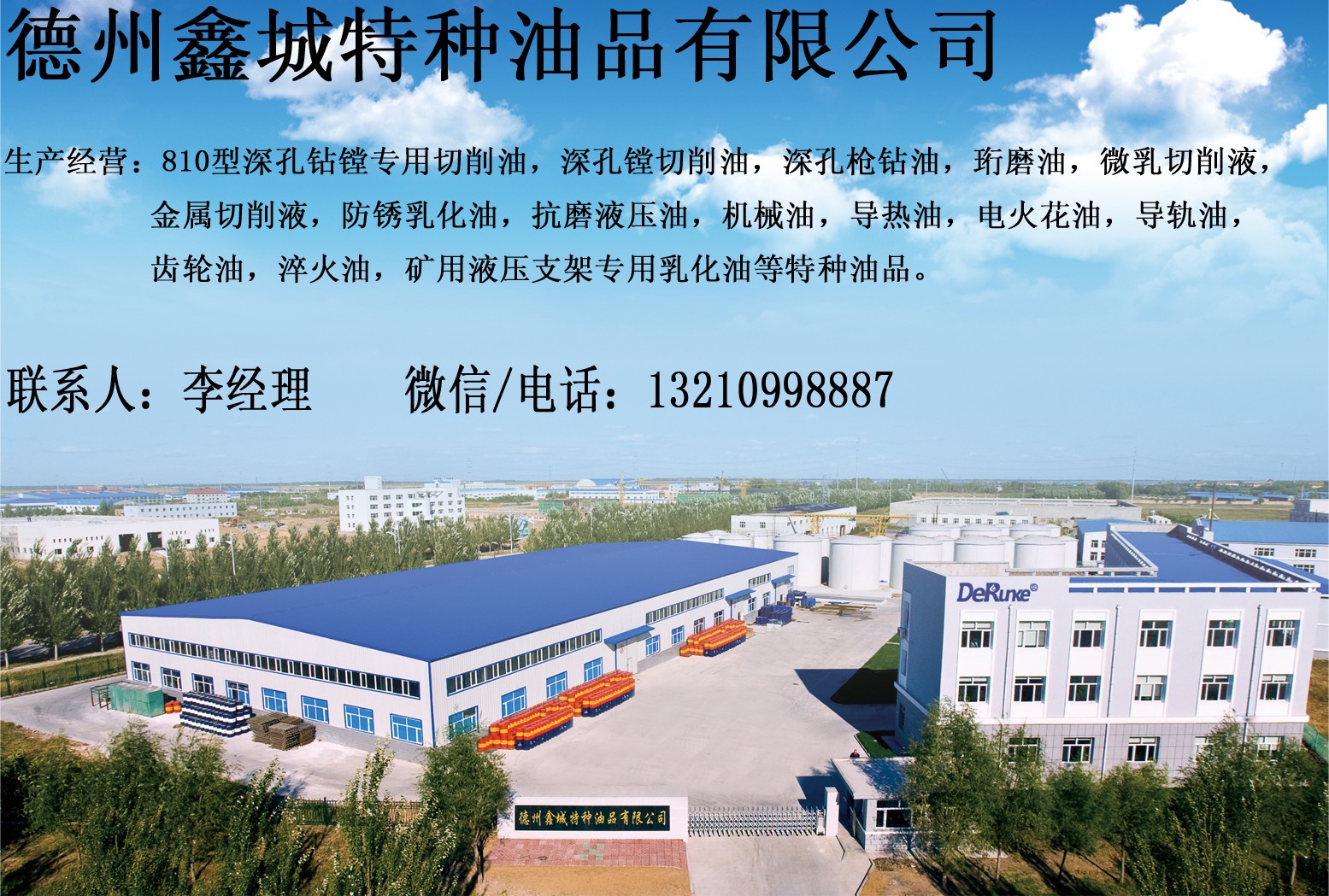 德州鑫城特種油品有限公司地處德州市德城區(qū)解放南大道932號(hào),是集生產(chǎn),經(jīng)營(yíng),信息咨詢?yōu)橐惑w的石油化工企業(yè)。專業(yè)生產(chǎn)各種型號(hào)深孔專用極壓切削油、深孔槍鉆油、珩磨油、乳化油、液壓油、切削液、防銹油、工業(yè)齒輪油等各種金屬加工用油(液)及礦用液壓支架專用乳化液(濃縮物),加工各種特種油品的專業(yè)廠家。