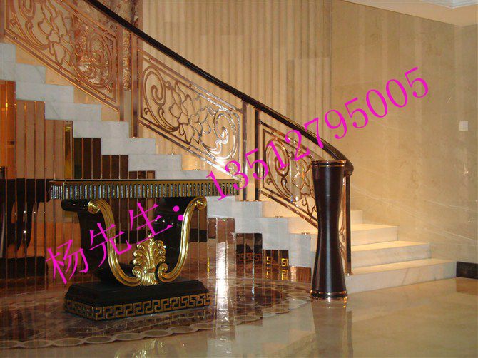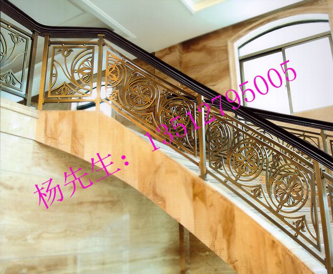 鋁藝別墅樓梯高檔豪華裝飾雕花樓梯護欄四川別墅鏤空鋁板樓梯訂做安徽高檔鋁藝樓梯批發(fā)生產廠家超豪華高檔鋁藝樓梯報價歡迎來電咨詢周先生青島鋁藝樓梯湖南高檔鏤空鋁藝電鍍樓梯報價鋁鎂整體雕刻護欄,鋁合金護欄,鋁合金起步立柱,歡迎來電來廠訂購!時尚與現(xiàn)代結合,家居與鋁鎂合金結合給你意想不到的驚喜。樓梯立柱的安裝一般分為預埋和梯級表面表裝,隨著人們追求美感與自然,表面安裝為人們所廣泛接納,石頭材為表面的水泥結構梯級板表面的安裝應先用金剛砂磚嘴在石頭材的表面開孔然后再用沖擊磚把里面的水泥材質梯級開孔,然后安裝。這樣做的話可以保持石面的完整,鋪梯級的時候不用為了遷就樓梯立柱而拼石。如果是木質的梯級踏板就先磚麻花磚把木版磚穿再用沖擊磚在水泥材質梯級開孔。如果是按以上這樣做的話,護欄就相當結實的了,但是一定要把膨脹螺絲打進水泥。立柱的安裝后是做扶手,然后才做其余所剩下的工序。佛山市溢升金屬制品有限公司緊隨時代的潮流,精心設計的K金鋁合金整體護欄外觀豪華氣派,安裝簡便,且穩(wěn)固實用,是當代高檔小區(qū),豪華別墅樓梯裝修的產品。欄桿,樓梯扶手,護欄的公司,擁有掌握核心技術,獲得幾十項專利,中國首創(chuàng)卡扣式連接的欄桿和側面縱向連接的樓梯扶手,深受廣大專業(yè)人士的喜愛和認可,技術和產品在同行中處于領先地位,產品銷往全國各地。