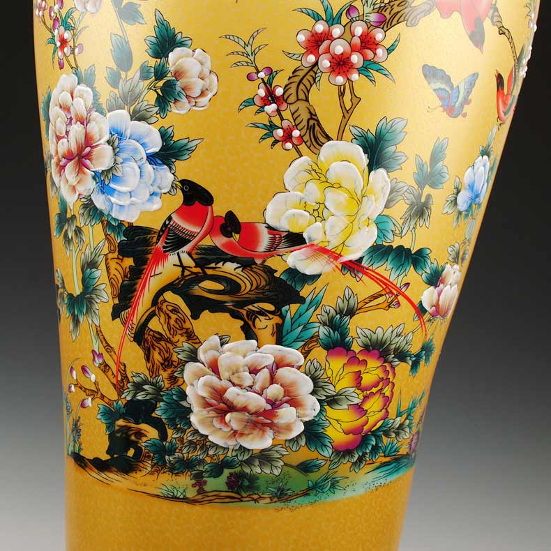景德鎮(zhèn)定做陶瓷大花瓶傳承千年的中國文化,通過傳統(tǒng)的手工工藝制作出美輪美奐的現(xiàn)代工藝品,逐漸成為樓堂館舍裝飾的點(diǎn)睛之筆。景德鎮(zhèn)市合元陶瓷有限公司專業(yè)致力于定做陶瓷大花瓶,適用范圍廣泛,多用于大廳、門廳、客廳等擺設(shè),主要用于開業(yè)禮品,大樓建筑落成、工程竣工開業(yè)、奠基典禮、酒店賓館陳設(shè)、企事業(yè)單位喬遷、周年紀(jì)念 、學(xué)校校慶、搬遷新居等。定做陶瓷大花瓶的主要特點(diǎn)在于純手工制作、高溫?zé)?、可以根?jù)客戶不同需求定做不同圖案、規(guī)格大小的陶瓷大花瓶。定做這款琺瑯彩金雞大花瓶不僅上檔次,還能彰顯主人尊貴品味與地位,圖案顏色鮮明對(duì)比強(qiáng)烈,花朵層次分明,花鳥更是栩栩如生,定做陶瓷大花瓶不僅是現(xiàn)代化的趨勢(shì),許多公司單位開業(yè)慶典,家居裝飾擺上這么一款大花瓶,別具一格彰顯主人風(fēng)范。定做陶瓷大花瓶規(guī)格有1米、1.2米、1.4米、1.6米、1.8米、2.2米、2.6米、3米等不同尺寸,圖案也是各有不同,款款新穎。