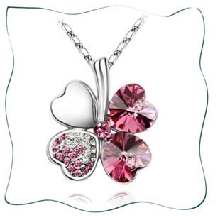 義烏飾品廠家批發(fā) 滿鉆愛心四葉草水晶項鏈 女短款 X-60¥3.80