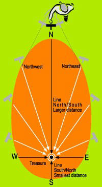 一旦您按此步驟進(jìn)行,您可以將區(qū)域范圍縮小至等于或小于20英尺。然后您就可以使用普通金屬探測(cè)器來(lái)完成工作了。一些對(duì)本產(chǎn)品的使用相當(dāng)精通的人幾乎能jing確定位目標(biāo)點(diǎn)至腳下。要達(dá)到這種程度,建議您勤加練習(xí)。(如下圖)