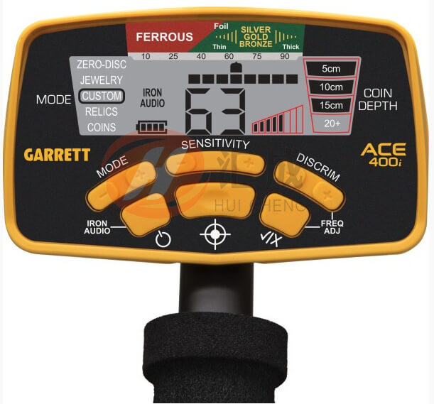 蓋瑞特ACE400i包括Garrett的獨(dú)jia探測(cè)技術(shù)和專利的歧視特性。該技術(shù)有兩個(gè)指標(biāo)尺度,讓你看到探測(cè)器的歧視設(shè)定(下表) ,以及每個(gè)檢測(cè)到的目標(biāo)(上表)的分析。 ACE 400i還具有增強(qiáng)的鐵分辨率(從垃圾鐵在雜亂的區(qū)域分離理想的目標(biāo)額外的分辨率)。