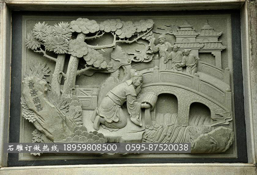 浮雕是雕刻的一種,雕刻者在一塊平板大將他要刻畫的形象雕刻出來,使它脫離本來材料的平面。浮雕是雕塑與繪畫結(jié)合的產(chǎn)品,用緊縮的方法來處理目標(biāo),因素來表現(xiàn)三維空間,并只供一面或雙面觀看。浮雕一般是從屬在另一平面上的,因此在修建上運(yùn)用更多,用具器物上也常常能夠看到。由于其緊縮的特性,所占空間較小,所以適用于多種環(huán)境的裝飾。近年來,它在城市美化環(huán)境中占了越來越重要的位置。浮雕在內(nèi)容、方法和質(zhì)料上與圓雕一樣五光十色。浮雕常見的材料有砂巖、青石、花崗巖、大理石等等。