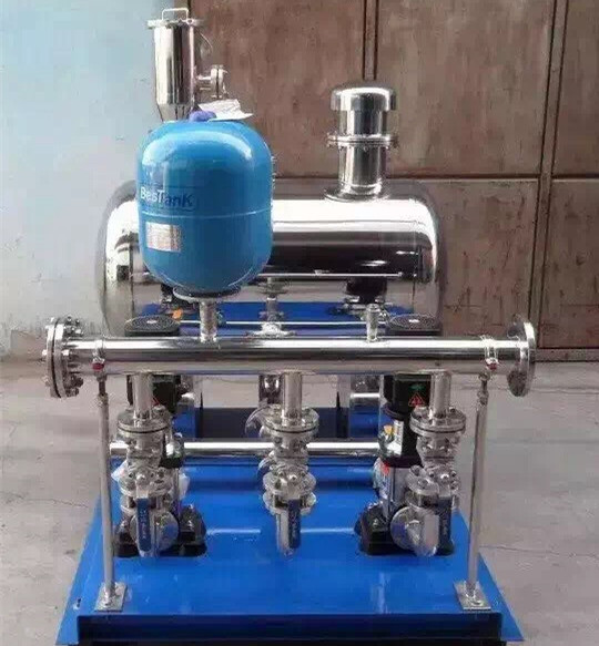 整套設(shè)備由穩(wěn)流罐、真空抑制機(jī)、變頻調(diào)速水泵機(jī)組、壓力傳感器、變頻控制柜、倒流防止器(可選)、消毒裝置(可選)、小流量保壓罐(可選)等組成。從市政管網(wǎng)引來的進(jìn)水管直接連接到穩(wěn)流罐的進(jìn)水口,穩(wěn)流罐的出水口通過消毒裝置后連接到加壓泵組的進(jìn)水管,加壓機(jī)組的出水管與用戶用水管連接,直接向用戶管網(wǎng)供水。