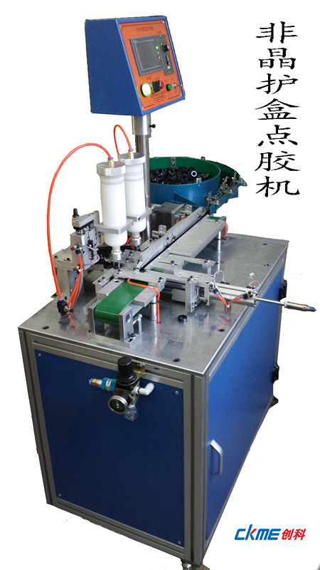 本點(diǎn)膠設(shè)備根據(jù)客戶(hù)要求而開(kāi)發(fā)。配有振動(dòng)盤(pán),可以把蓋自動(dòng)翻轉(zhuǎn)底蓋點(diǎn)膠面,由輸送帶送到點(diǎn)膠訂 ? 位位置,進(jìn)行點(diǎn)膠,點(diǎn)膠量均勻,可以提高產(chǎn)品的品質(zhì)。速度快,省事,調(diào)試方便。